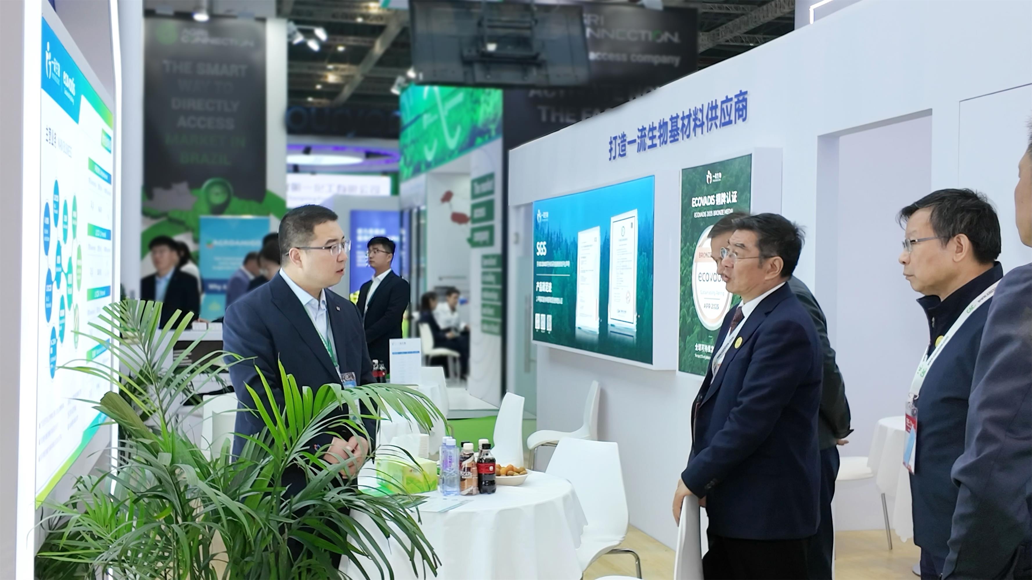 展會期間,中國石油和化學(xué)工業(yè)聯(lián)合會相關(guān)領(lǐng)導(dǎo)蒞臨一諾生物展位參觀指導(dǎo),并就綠色制造、生物基產(chǎn)業(yè)發(fā)展及產(chǎn)品應(yīng)用等話題與公司團(tuán)隊(duì)進(jìn)行了交流。圍繞行業(yè)發(fā)展趨勢、綠色低碳轉(zhuǎn)型路徑以及生物基產(chǎn)品的產(chǎn)業(yè)化方向,雙方展開了深入探討。這也讓我們更加深刻地感受到,綠色低碳與產(chǎn)業(yè)化實(shí)踐正成為行業(yè)持續(xù)關(guān)注的重要議題,而生物基路線在其中的價(jià)值也正在被進(jìn)一步看見。